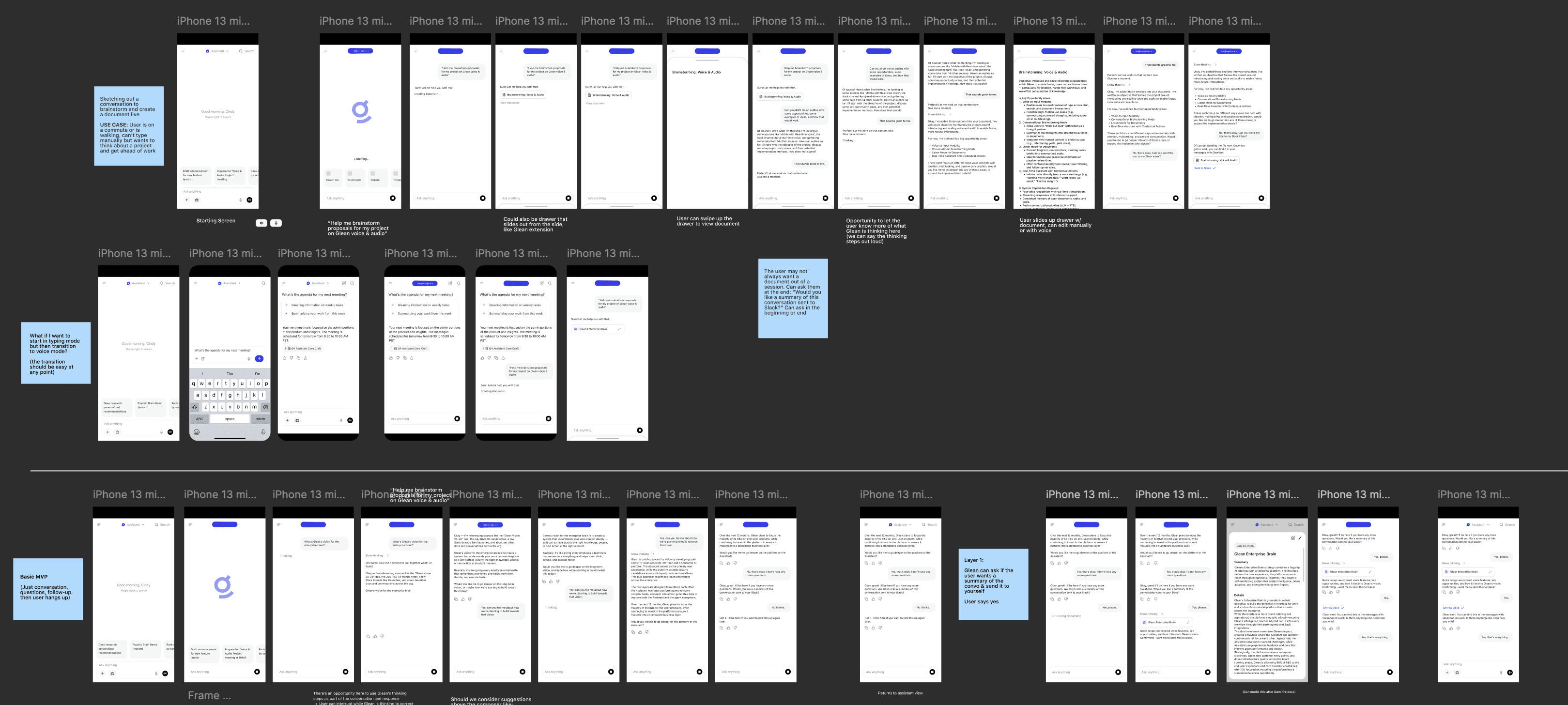 By building on this foundation and leveraging features already in development, I designed assistive layers that expand the core experience and define a unique value proposition for Glean's voice feature. Together, they position Glean’s voice assistant as more than a generic interaction, and highlight how Glean can leverage its enterprise knowledge graph and integrations to deliver a voice experience that’s deeply embedded in work, setting it apart from competitors.