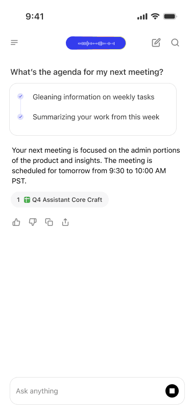 Glean is moving from a search product to a central orchestrator of work. Voice is a natural extension of that vision — a way to bring company knowledge into more moments and unlock productivity that a keyboard can't reach.